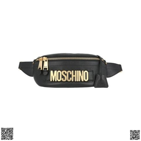 Moschino Black & Brushed Goldtone Logo 腰包